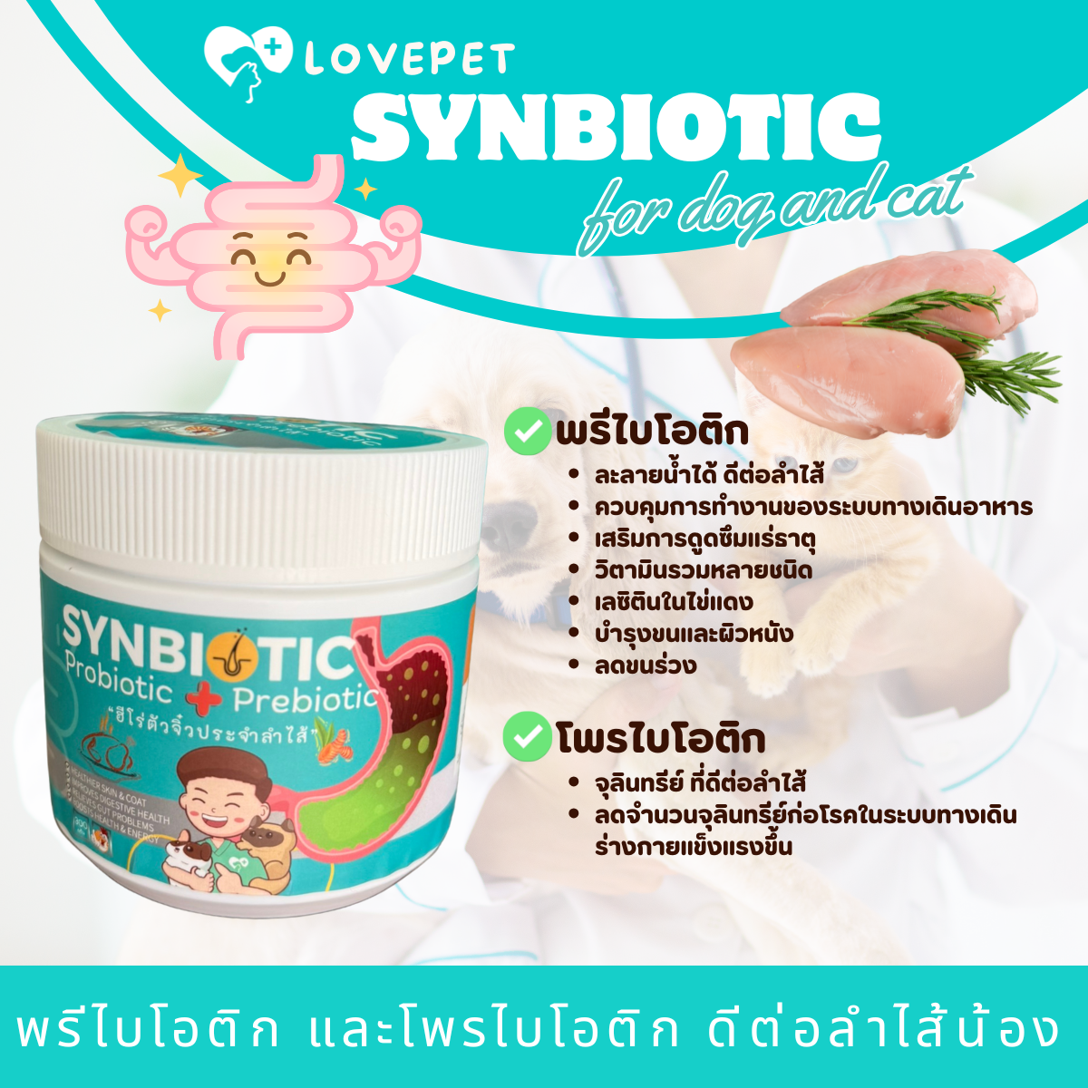 ขนม หมาแมว เพื่อนที่ดีสำหรับลำไส้ Synbiotic รสไก่